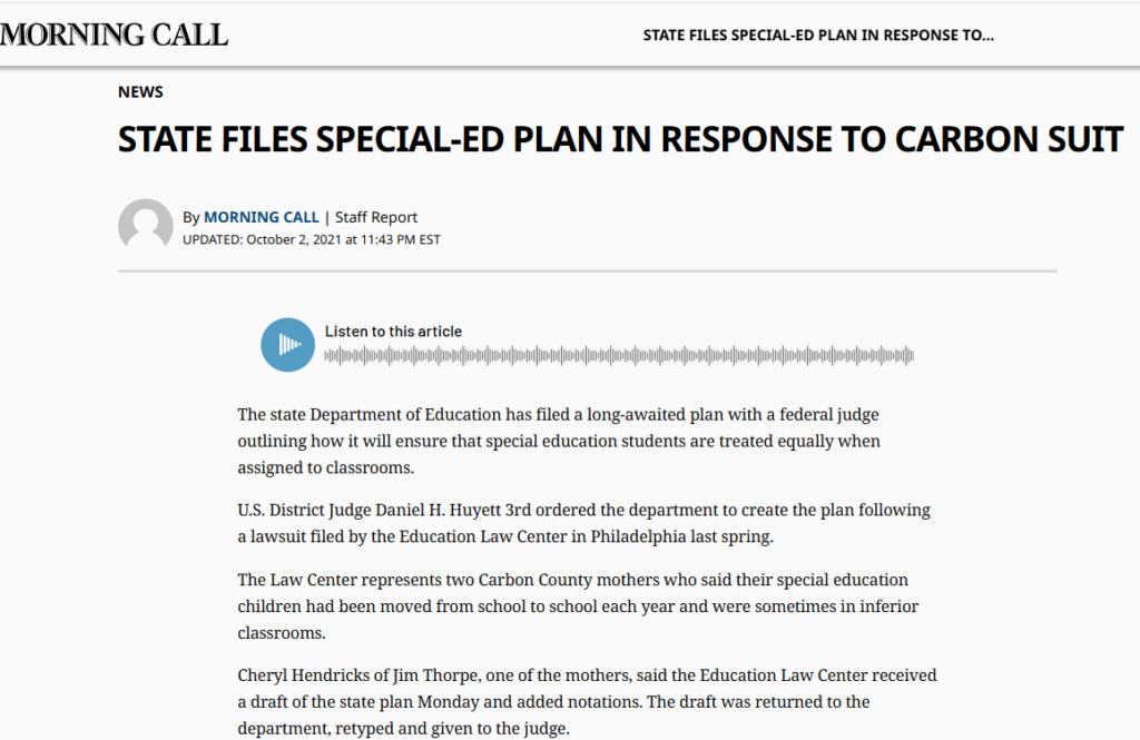 In 1986, the Education Law Center sued the Williamsport Area School District and the Pennsylvania Department of Education, alleging that districts across the state were violating students’ rights by discriminating against them on the basis of disability.